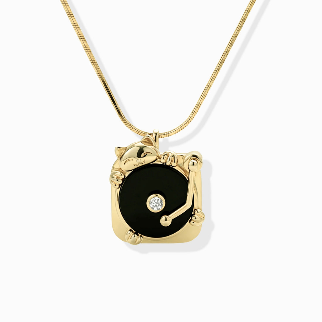 The Vinyl Meow Collection celebrates the rhythm of memory and the romance of sound. Inspired by vintage vinyl records, each necklace features a sleek, rotatable black onyx disc — a symbol of timeless melodies and treasured moments. Inside, an NFC chip allows you to play music with a simple tap of your phone, bringing your favorite tunes and memories to life.